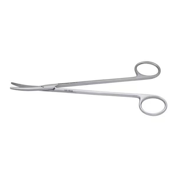 These are 7-inch curved Metzenbaum scissors from Henry Schein, economy grade, made of surgical stainless steel. They are designed for delicate tissue dissection and general surgical procedures. The curved blades allow better access around structures, and the scissors come individually (each).